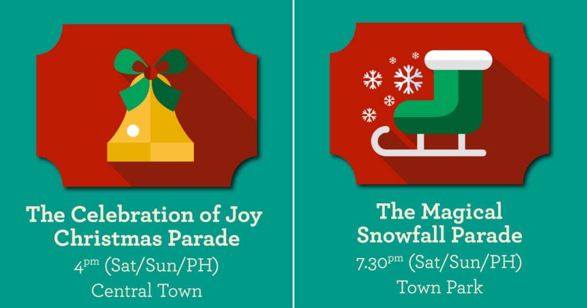 Additionally, every Saturday, Sunday and Public Holiday, shoppers can catch The Celebration of Joy Christmas Parade 4pm at Central Town and The Magical Snowfall Parade 7:30pm at Town Park.